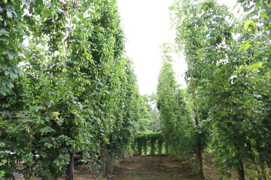 ホップはビールの主原料で、主に香りと苦味のもとになります。通常、ビールに使うホップは夏に収穫したものを長期保存できるように熱乾燥したものです。1年中安定した品質のホップを使うために熱乾燥は欠かせません。しかし、その工程で香りの成分が揮発することも避けられません。