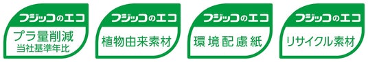 フジッコでは、地球環境への配慮に向けた取り組みとして、環境配慮型パッケージの導入を進めています。「フジッコのエコ」マークは、これらの取り組みをお客様により分かりやすくお伝えするためのマークです。本マークは、当社が設定した、