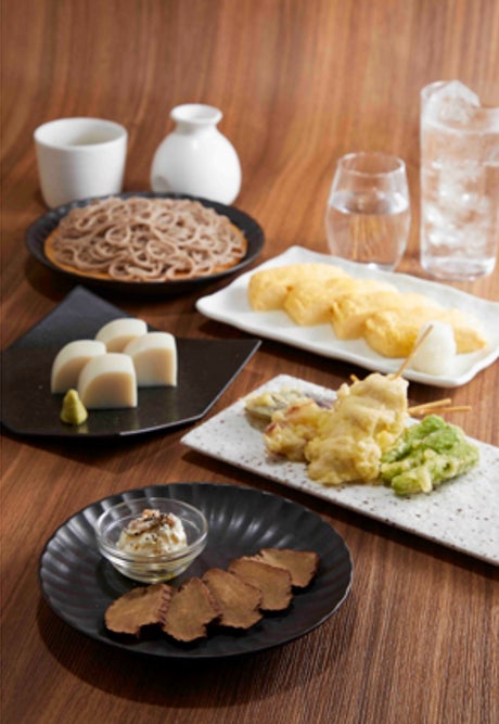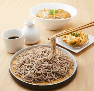 自社開発した風味豊かなコシのある茹でたての「二八蕎麦」を、本枯節の出汁が効いたこだわりのそばつゆで提供いたします。揚げたての海老天丼セットやロースかつ丼セット(各1,080円(税込))などもご用意しています。