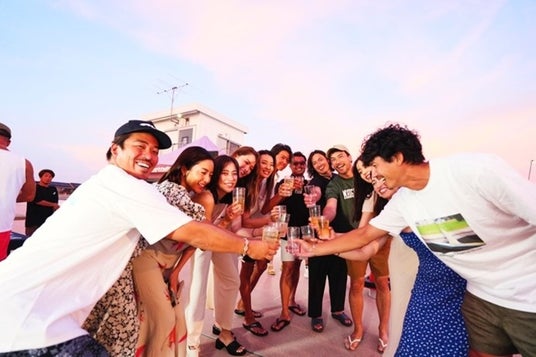 最後は全員で讃え合い、サーフィンのコンテストは最高潮の盛り上がりを見せました。