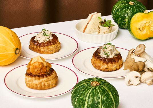 スイーツには、渋皮煮の栗を刻んで混ぜた濃厚で滑らかなマロンクリームと、芳醇なラム酒が香るココアスポンジを重ねた「栗ショート」や、甘みの強い栗かぼちゃのクリームをきめ細やかなシフォンケーキで包み、芳ばしいかぼちゃチップを仕上げに飾る「栗かぼちゃのシフォンケーキ」、ぷちぷちと弾ける食感のイチジクのペーストがチョコレートの濃厚な味わいを引き立てる「イチジクチョコケーキ」、ヴァローナのチョコレートの重厚なテリーヌにまるごと一粒の栗をふんだんに閉じ込めた「栗テリーヌショコラ」、そして、糖度が高く、上品な香りの大粒のマスカットを贅沢に敷き詰めた「シャインマスカットタルト」など、秋の味覚を満喫するアイテムが揃います。