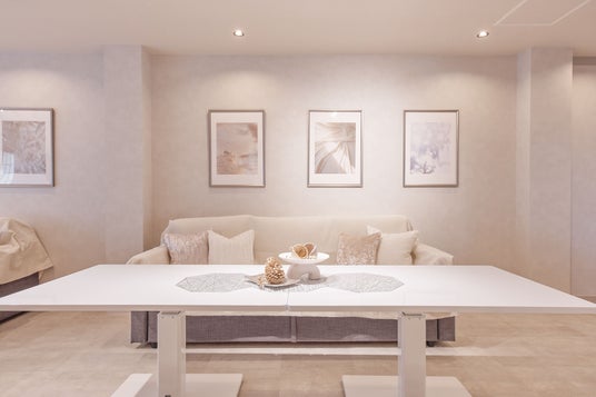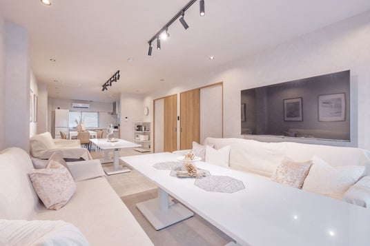 2階は滞在者一同が集える広々としたキッチン付きリビングダイニング。調理器具や食器類、キッチン家電を豊富に取り揃えているので料理も可能です。大きなソファはダブルサイズのソファベッドとしても利用できリビングルームでもお休みいただけます。