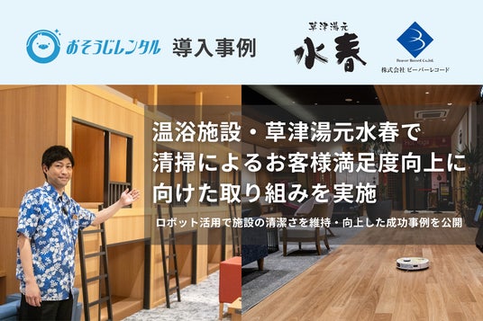 ビーバーレコード社が運営する草津湯元水春では、このたび当社の定期清掃サービスと「おそうじレンタル」を組み合わせて導入いただきました。これにより、掃除ロボットによる日常的な清潔さの維持と、徹底的な衛生管理の両立を実現しました。なお、お客様に対する施設価値向上に貢献した具体的な成果は以下の通りです。