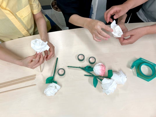 紙の大切さや、普段何気なく使用しているティシュについて、楽しみながら考えるきっかけにしていただきたいという想いから、特別イベントとして講師をお招きし、ティシュなどでお花づくりを行うワークショップを展示ブース内にて実施いたします。作ったお花はお持ち帰りいただけますので、ぜひ親子でご参加ください。