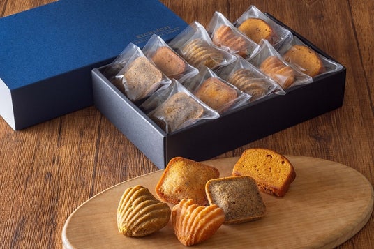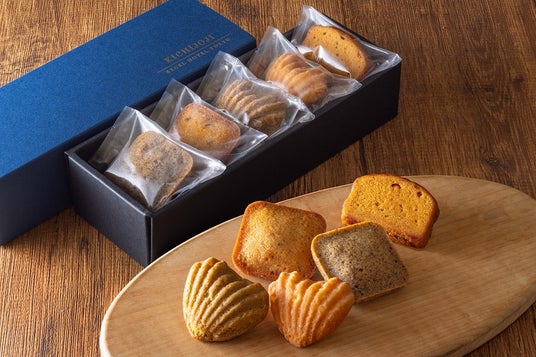 しっとりと焼き上げられた焼き菓子は、5種のバラエティ豊かなフレーバーで、見た目にも可愛らしいコロンとしたフォルム。プレーンフィナンシェ、紅茶フィナンシェ、プレーンマドレーヌ、抹茶マドレーヌ、キャラメルパウンドケーキのアソートで、5個入り、10個入りの2種を販売いたします。