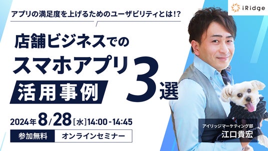 株式会社アイリッジ(本社:東京都港区、代表取締役社長:小田 健太郎、東京証券取引所グロース:3917、以下「アイリッジ」)は、2024年8月28日に企業のアプリ運用、マーケティング担当者向けセミナー「店舗ビジネスでのスマホアプリ活用事例3選」を開催することをお知らせします。