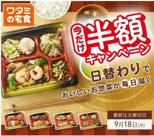 ワタミ株式会社(本社:東京都大田区、代表取締役会長 兼 社長CEO:渡邉 美樹、以下「ワタミ」)が運営する食事宅配サービス「ワタミの宅食」は、2024年8月22日より、「半額キャンペーン」の受付を開始しました。(初回お届け週8月26日週)