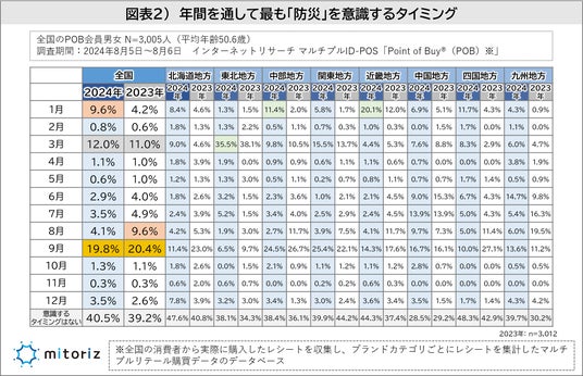 ・2023年に引き続き「防災」を意識するのは9月。能登半島地震の影響か中部地方は1月が昨年比5倍に