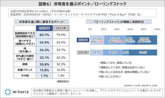 ・「ローリングストック」を理解している人は2023年から4.8Pt増加しており、徐々に浸透が進む