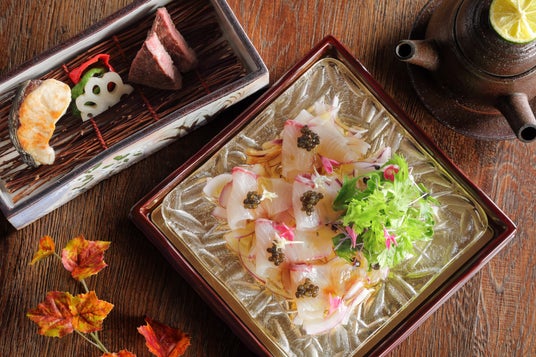 ・和風カルパッチョ(オリーブハマチ、鯛、サーモン、いくら)