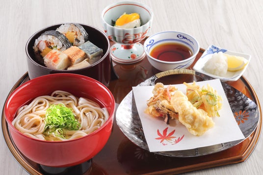 「黄綬褒章」や「現代の名工」など数々の受賞歴をもつ日本料理 うえまち 料理長 茅ヶ迫正治が、「世界の宝石」とも称される瀬戸内海で獲れた魚やオリーブ牛、オリーブハマチなどを堪能できる会席をはじめ、香川県産の小麦を使用したコシのある麺に伊吹島のいりこを使用した出汁がしっかりと絡む讃岐うどんをご用意します。香川の地酒が味わえるお得な「ペアリング ドリンク」もご用意していますので、会席と合わせてお楽しみいただけます。