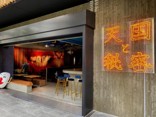 歩いて行けるほどの距離に同じくLD&Kが運営する系列店舗、カフェ&バー「天国」と、ライブハウス「秘密」もあります。こちらの店舗も内装に拘ったおしゃれな雰囲気となっています。