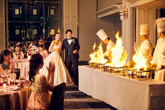 さらに、ホテルニューオータニ(東京)内に世界第1号店となるブティックを構える「ピエール・エルメ・パリ」の代表作「イスパハン」を、ウエディングケーキにアレンジした限定ケーキ「デセール ド マリアージュ イスパハン」も提供し、2種のスイーツ食べ比べをお愉しみいただけます。