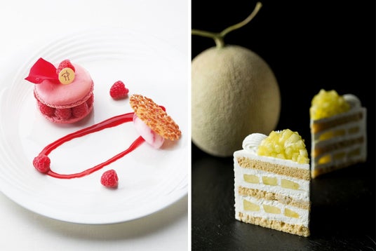 左:デセール ド マリアージュ イスパハン 右:スーパーメロンショートケーキ