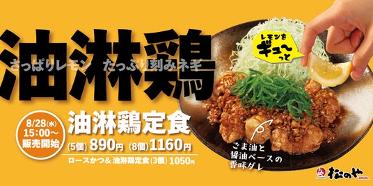 株式会社松屋フーズ(本社:東京都武蔵野市、代表取締役社長:瓦葺 一利)では、とんかつ専門店の「松のや」におきまして、2024年8月28日(水)午後3時より、「油淋鶏定食」を発売いたします。