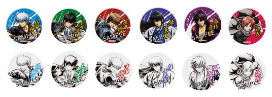 「銀魂 キャラポップストア」の新規描き下ろしイラスト「輸攻墨守」を使用した和紙素材の缶バッジです。カラーver.(画像上)とアナザーver.(画像下)の2パターンを展開します。