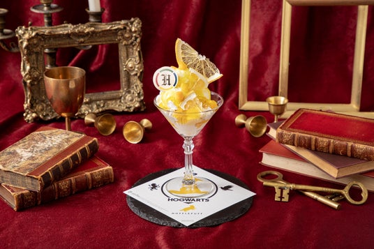 パンナコッタやバニラとヨーグルトの2種のアイスをのせ、ハッフルパフを象徴するカラーをイメージしたレモンソースで仕上げたパフェです。