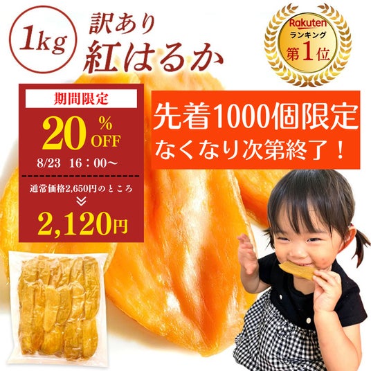 『訳あり紅はるか干し芋1kgが20%OFF!』開催期間