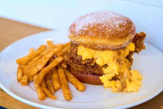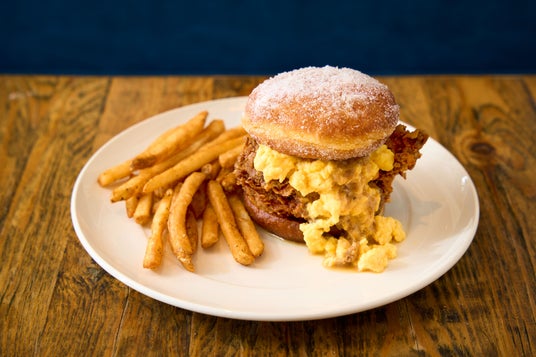 ザクザクチキンとふわとろエッグの南部風もう一皿はThe JOHNSON BURGERでも大人気のフライドチキンと、ふわとろのスクランブルエッグがマッチしたバーガー。 エッグにかけた甘めのホワイトグレイビーソースは主にアメリカ南部で伝統的に親しまれており、正統派のルーサーバーガーとはまた違った味を楽しめます。甘いドーナツにザクザクのチキン、ふわとろエッグと様々な角度からお楽しみください。