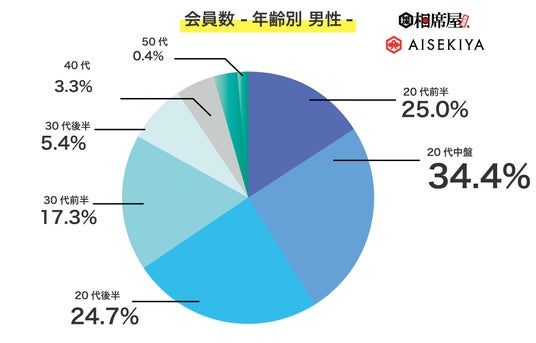 また年代別のご利用割合でみても幅広い年代のご利用が見られますが、男性女性は主に20代のご来店が80%以上を占めております。