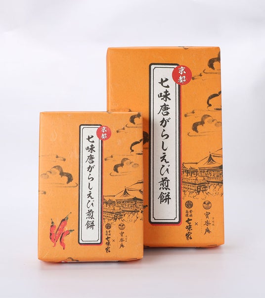 京都は清水坂にて明暦年間より暖簾を掛けた七味家本舗様の七味唐がらしをえび風味の煎餅生地に練り込み、かりっと焼き上げました。上品な辛さがお口の中に広がるお煎餅です。