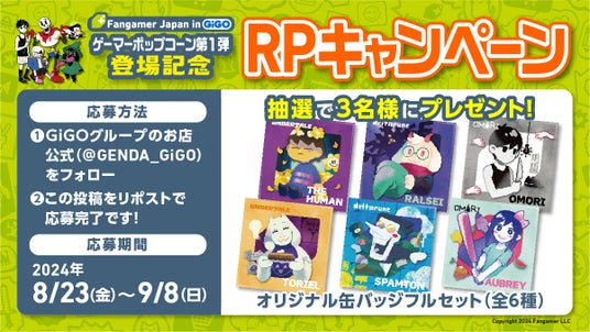 Xアカウント(https://x.com/GENDA_GiGO)をフォローの上で、該当の投稿をリポストくださったお客さまの中から抽選で3名様に「ピンバッジセット(全6種)」をプレゼントいたします。