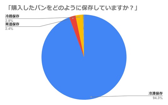 ・パン好きの94.3%が、買ってきたパンは冷凍で保存すると回答