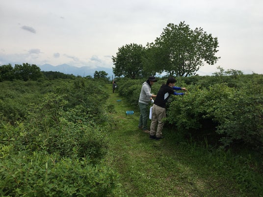 低木のハスカップを収穫する様子
