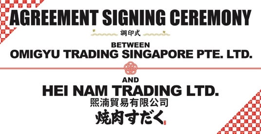 「焼肉すだく」を運営する株式会社総合近江牛商社(本社:滋賀県守山市、代表取締役:西野立寛)はHEI NAM TRADING LTD.(熙?貿易有限公司)とフランチャイズ契約の調印式を開催することを決定いたしました。
