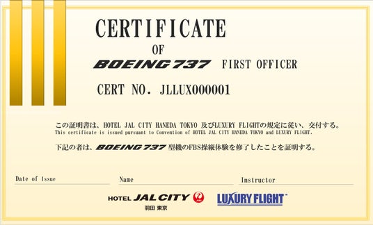 ※本宿泊プラン体験後にフルフライトシミュレーターを体験された方には本免許Verをお渡しします。
