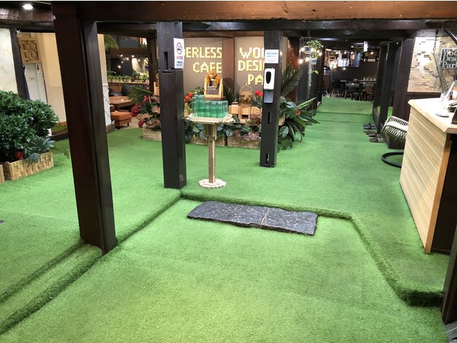 100坪ほどある店内面積のほぼ全てには人工芝が敷かれています!