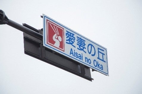 愛妻の丘付近にある珍しい標識「愛妻家に注意・農耕車両に注意」
