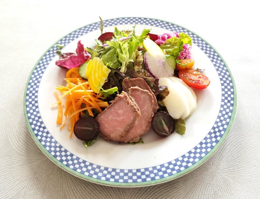 かずさ和牛の冷製、梨やぶどうなど千葉県の恵みあふれるカラフルなサラダ