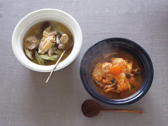 とろりとしたスープに溶け込んだ、麹のまろやかなコク。やさしい味わいながら、しっかりとしたうまみも感じます。1人前ずつの個包装になっているため、小さなサイズの『銘々鍋』での調理にぴったりの鍋キットです。においが残りにくく、色移りもしない琺瑯素材は、こうした鍋商品とマッチします。