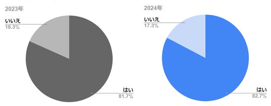 そして2024年の調査では82.7%が「はい(2023年よりも値上がりを感じる)」と回答しています。