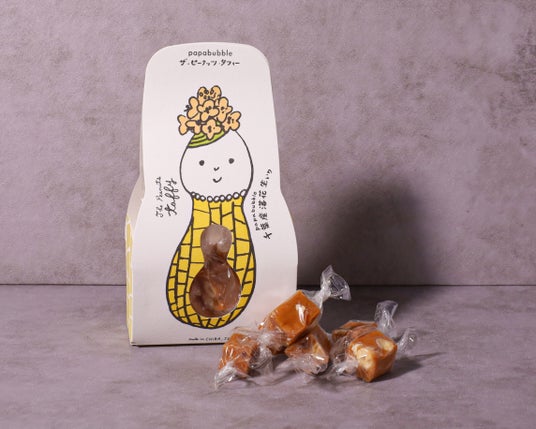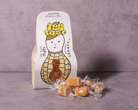 バター・砂糖・水飴などを練って作ったソフトキャンディのことを指す「タフィー」は、世界各国で愛されている伝統的なお菓子です。千葉県産の落花生をたっぷり加え、美味しさはもちろん、大神慶子さんのアートワーク・甲斐みのりさんの監修によりデザインまでこだわり尽くしました。以前店舗限定として販売していた商品を期間限定で復活販売し、秋のおやつに、思わずため息が出るような甘いひとときを提案いたします。