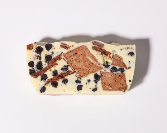 ティラミス風ホワイトチョコの中にブラックココアのビスケットと、コーヒーのマシュマロを合わせました。甘み・香り・コクのバランス良い味わいに加え、ビスケットの「サクサク感」や、マシュマロの「モチモチ」といった食感も楽しめる商品です。