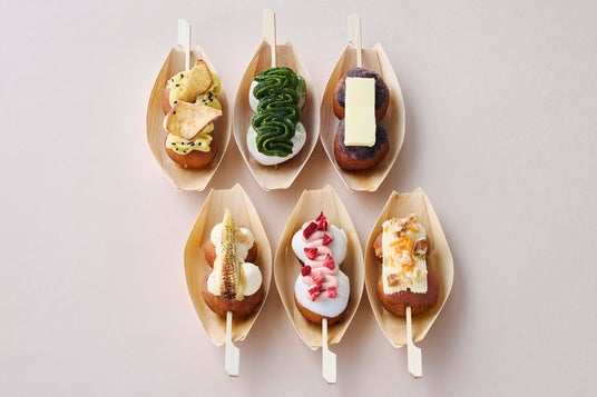 もちもち生地のドーナツをだんごに見立てた毎年好評の「dangoドーナツ」がバージョンアップして今年も登場。様々なフレーバーをお楽しみいただけるよう、今年は2個串のだんごドーナツに、こだわり食材を豪華にトッピングした、6種類の「dangoドーナツ」を販売いたします。
