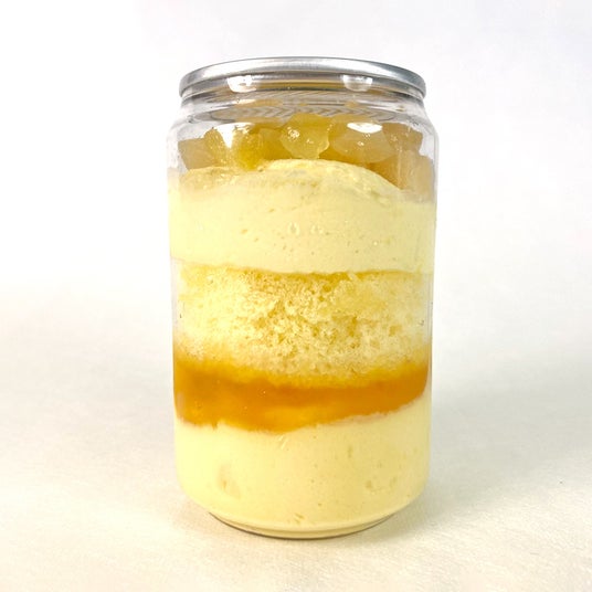 「ネクターミックス」をイメージして、ネクターミックス風のソースとクリーム、白桃・りんご・パインのシロップ漬けを重ねました。さまざまなフルーツをミックスすることで、奥深い味わいを感じられるご褒美スイーツです! ネクター60周年を記念し登場した新キャラクター「ももぺこ」を配置した可愛いデザインにもご注目ください。
