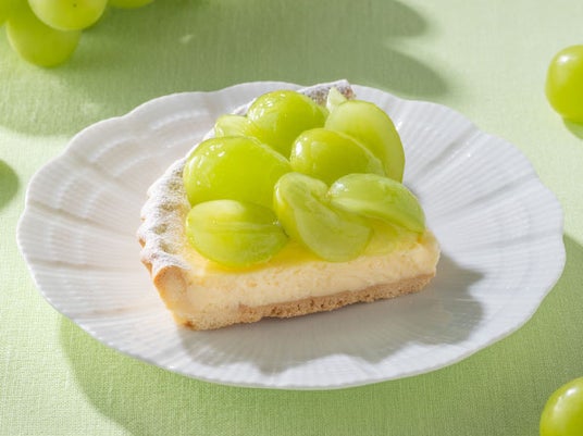 爽やかな酸味のサワークリーム入りチーズタルトに、瑞々しく爽やかな甘さのシャインマスカットを飾りました。