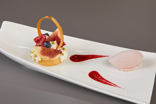 デザート 島根県産いちじくのパニエ 奥出雲薔薇園の薔薇を香らせたフランボワーズ