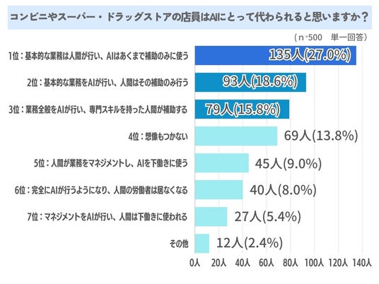 コンビニやスーパー・ドラッグストアの店員はAIにとって代わられると思いますか?【n=500 単一回答】