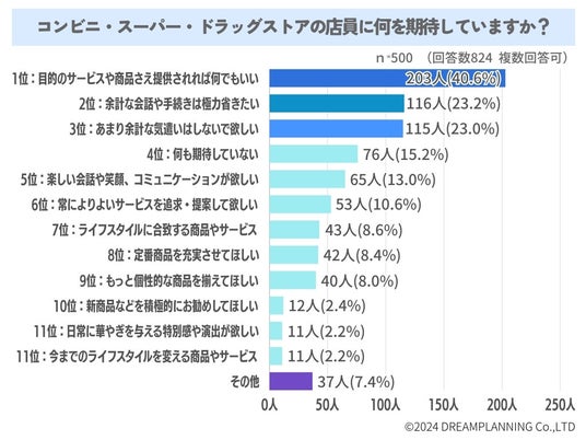 コンビニ・スーパー・ドラッグストアの店員に何を期待していますか?【n=500 回答数824 複数回答可】