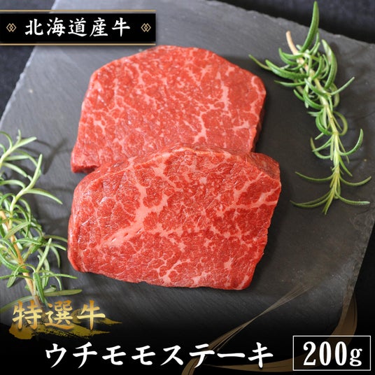 北海道産 特選牛ウチモモステーキうしろ脚の内側にある脂肪が少なくヘルシーな部位。