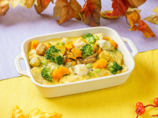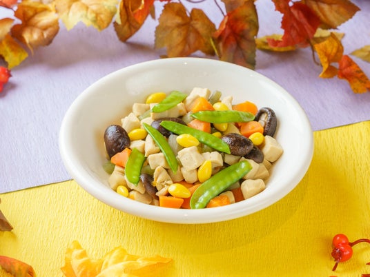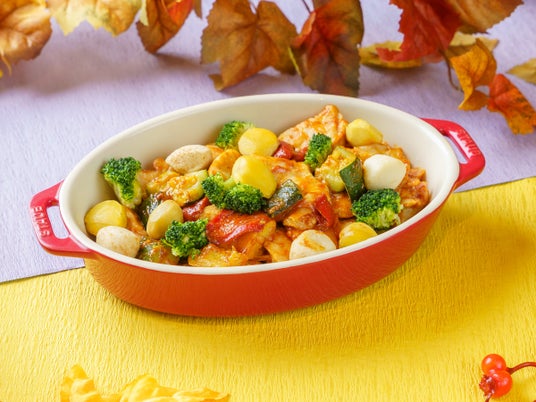 今回は秋の食材をふんだんに使用したおかず、惣菜、サラダやスープなど多彩なメニューを計14種類お届けします。かぼちゃやしめじを使った「若鶏とかぼちゃのクリーム煮」や、銀杏としいたけを使った「銀杏と高野豆腐の煮物」、きのこの旨味を凝縮した「きのこのポタージュスープ」など、美食の秋を楽しめるメニューを取り揃えました。