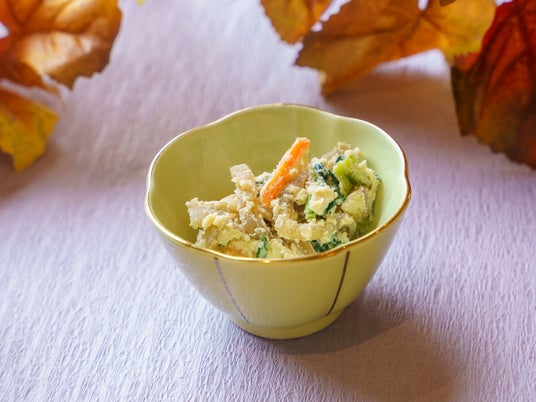 栗やさつまいもなど多彩な具材をやわらかな豆腐で優しく包んだ秋の味覚を楽しむ一品