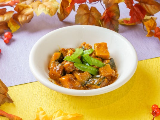 ゴロっとした鶏肉とやわらかなかぼちゃが相性抜群のお子さまも食べやすいおかずメニュー