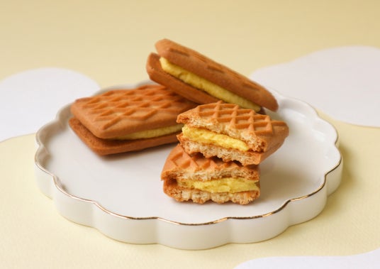 ぴよりん生しるこサンドは、一口食べればふんわりしっとりとしたビスケットの食感と、まろやかなプリン風味のクリームが口の中に広がります。あんこの優しい甘さとプリンの風味が合わさることで、老若男女問わず愛されるスイーツに仕上がりました。