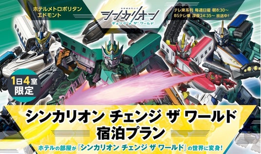 ホテルメトロポリタン エドモント(所在地/千代田区飯田橋、総支配人/松田秀明)では、人気TVアニメ『シンカリオン チェンジ ザ ワールド』の装飾を施した3タイプのコラボレーションルームを2024年7月20日より販売し、ご家族連れを中心に大変好評をいただいております。2024年9月14日(土)ご利用分より、N700Sのぞみブルートレーラーフォームルーム1室を新設、4体のシンカリオンと4人のキャラクターのそれぞれをテーマとした、全4室のコラボレーションルームを展開いたします。