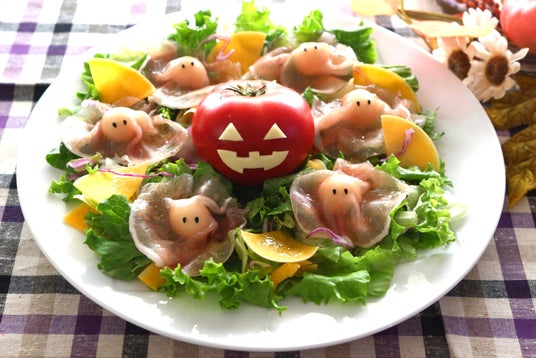 アレンジレシピ「生ハムおばけのハロウィンサラダ」